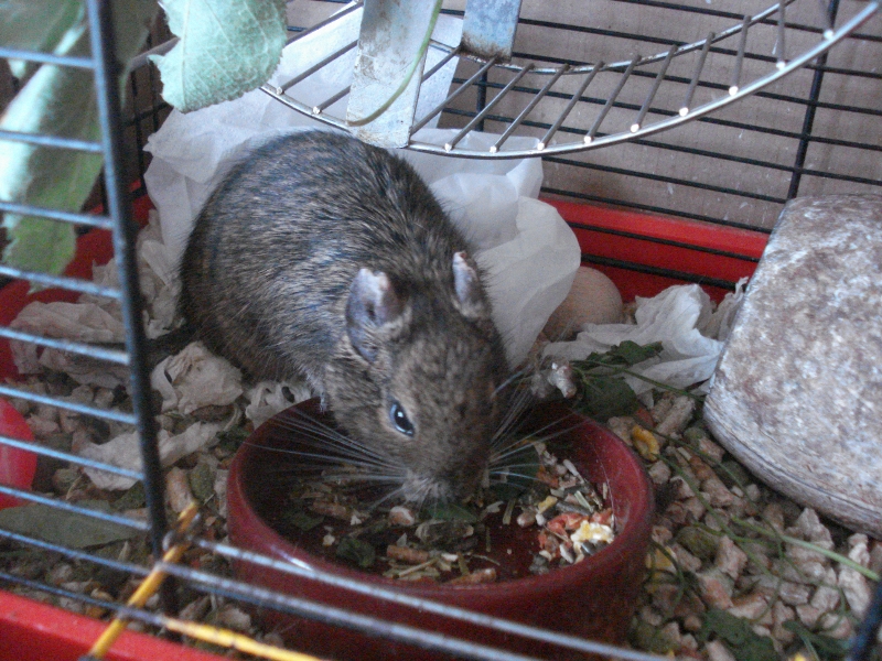 Fotogalerie zvířátka Osmák degu. Osmák degu Filípek v kleci s kapesníky Osmák degu Filípek v kleci s kapesníky.
